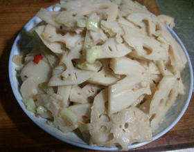莲藕之前用水煮开过,可以保证莲藕脆口,还有选用火麻油的原因是不会腻,而且很健康的油