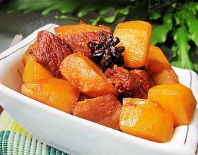 49分钟后加入去皮切块的土豆中火烧至土豆软烂。