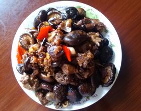 - 7. 加入料酒烧5-6分钟,再放水发的香菇炒匀