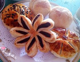 - 11. 然后拿一个卷好的面剂子竖着放,在擀成长条,翻过来,再卷起,这样层次就出来了