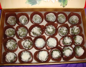 - 14. 每个裹好的团子放在纸托上。如果隔的时间长了,团子有点硬可以回锅蒸一下就软了。不过最好在短时间内吃完哦。