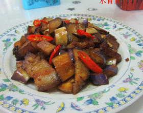 腊肉切片,茄子切丁,辣椒切丝,蒜切片。