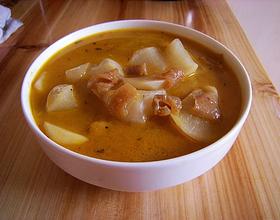7、将萝卜肉皮倒入高压锅,加水,加盐大火上汽后转小火炖10分钟。