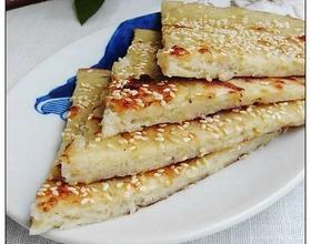 小火盖盖慢煎,小心翻面再翦,至到饼熟切块即可。