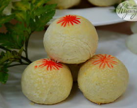 - 10. 在月饼上压一下,形成菊花纹,点缀一下酥饼。