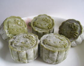 - 12. 最后先用软刷刷去多余的手粉,再用模具压成月饼即可,保鲜盒装盒冷藏,冰皮月饼不宜久放,2、3天内吃完。(这次用的是kitty猫的模具)