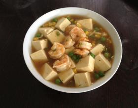 - 2. 把豆腐切块 不要太小 要不容易碎。将切好的豆腐过下开水 马上捞出 放在碗里备用。
