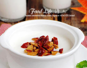 诗心片语:1:用现成的酸奶做引子的话,比例为1:4或者1:5,1:4的更浓绸一些。2:发酵酸奶的容易最好选用玻璃密封容器,在使用前要用开水烫过,而且保证使用时无油无水。3:制做好的酸奶应该是白嫩粘绸的。4:吃不完的酸奶要放入冰箱冷藏,并且尽快食用完。