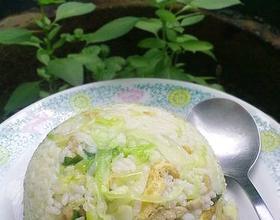 除包菜外所有材料先跟饭拌匀再倒入包菜拌,就不会出现饭太多拌不匀的情况。