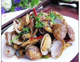 炒至花蛤开口,如果锅太干,可适量滴入点水。