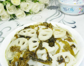 材料:莲藕(已洗净去皮切片)、酸菜(已切碎)