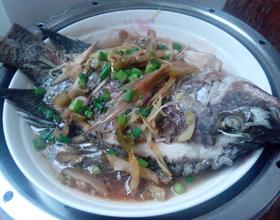 水烧开后放入鱼,大约蒸十分钟,洒上葱花。