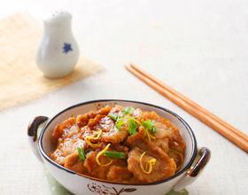 - 5. 锅中留油,倒入糖醋汁、淀粉中小火熬至黏稠,放入葱姜丝,倒入肉片,翻炒均匀约半分钟后出锅。