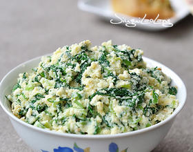 把焯水的叶菜攥干水分后切碎备用。