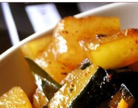 油热后肉丁先爆炒,然后放入切块的冬瓜,放入黄酒、盐等调料