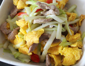 加入红椒跟鸡蛋。