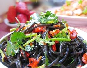 - 3. 香菜摘洗干净,切成长段,跟蕨根粉装在同一个盘子中。