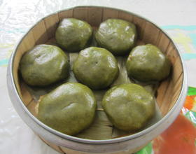 - 2. 水烧开,加点盐,放入艾草淖一下