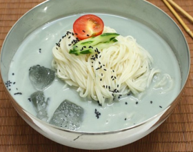- 9. 过水面入碗,冰镇好的黑豆汤用盐调好,放入碗内,加入冰块、黄瓜丝、小西红柿、芝麻点缀一下。浓郁、凉爽的黑豆面完成了!建议头天晚上饮酒过度的哥们,可在第二天试一试。