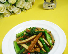 烧锅倒油烧热,下入切好的香干翻炒一下。