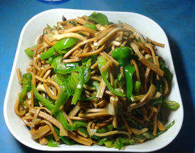 下入青椒,再加入盐,味精、白糖翻炒均匀起锅。
