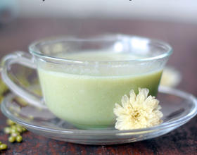 放入绿豆制作成豆浆即可。喝的时候可以放适量冰糖,过滤掉豆渣,也可以一起喝掉,。