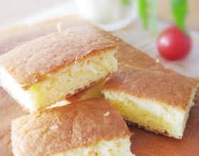 - 10. 把蛋糕糊抹平,端起来在地上用力震几下,可以让蛋糕糊表面变得平整,并把内部的大气泡震出来。把烤盘送入预热好180度的烤箱,烤15-20分钟,用牙签插入蛋糕内部,拔出来后牙签上没有粘上蛋糕,就表示熟了。