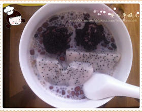 做这个是因为有一次和老公去甜品店吃到的,人家那个叫做黑糯米白雪芒果甜甜,因为家里那天只有火龙果就用这个代替了,味道也是不错的,大家可以尝试一下。