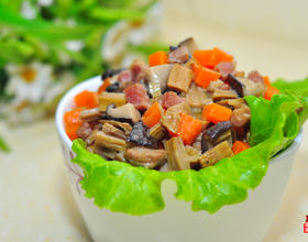 - 7. 炒锅烧热放油,放入咸肉翻炒变色出油