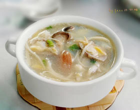 - 7. 然后加水3碗把菇类烧开;