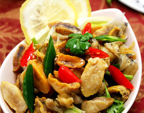 主料:鲍螺肉200克副料:柠檬、香菜、大葱、青红美人椒调料:生抽、盐、鱼露、香醋、香油