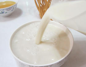 取豆浆吃甜的加点糠即可开吃,俺觉得不加糖原汁原味更好吃。