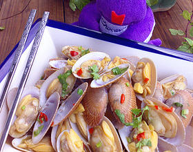 - 8. 等到熟花蛤稍晾凉,倒进之前调好的味汁(蒸花蛤的汁不要丢弃)