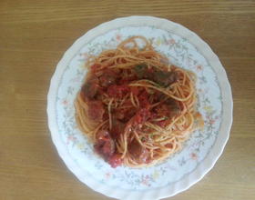 把水烧开,放一勺盐,大概5克,再放面,我用的是5号意大利面,煮8分钟