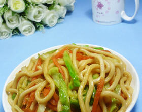 - 7. 接着,合入焯好的乌冬面翻炒一下。
