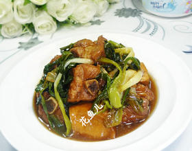 - 7. 烧锅倒油烧热,下入焯好的排骨翻炒翻炒。