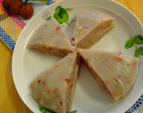 将盘子擦干,抹少量油,然后将芋头丝倒入其中,上蒸锅蒸制半小时,拿出放凉切片即可。吃时可以调上一些喜欢的酱料