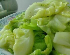 准备原材料:包菜洗净,剥去外面一层包菜皮,蒜、葱分别洗净。