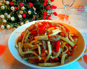 豆腐丝炒肉即成。
