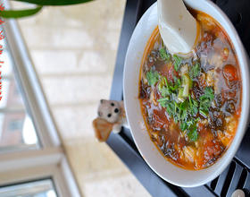 3、喝得时候加适量葱花和香菜,不喜欢可以不加。