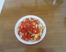 - 6. 把做好的西红柿鸡蛋卤浇在面上,好吃的西红柿手擀面就做好了,开吃吧!!