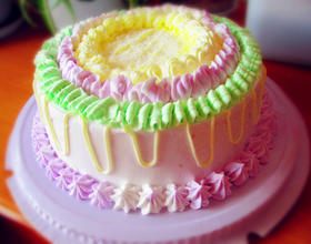 烤蛋糕胚的时候按自家烤箱功率调整时间温度。这种奶油蛋糕最好别加色素,吃了不健康。可以用食材粉代替色素(我家实在没有什么代替的了所以才加色素)