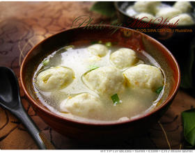 - 9. 清水氽后鲜汤煮:另起锅放入鸡清汤,投入鱼丸,可加入冬笋香菇火腿木耳葱末等配色点缀,煮沸后即可。