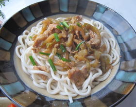 给面条加上榨菜肉丝,配点泡萝卜条和蒜苗炒豆腐干就OK了。