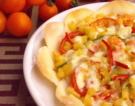 如想要整个饺子皮更脆,那就要增加一步,放好饺子皮在烤盘后,用牙签在中间的饺子皮扎些小孔后(盘边的别扎),入烤箱,把饺子皮烤脆了,才下其他所有材料进行下一步。