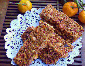 - 3. 荞麦蜂蜜、糖、黄油在放在一大碗内,花生与核桃仁稍为弄碎成粗粒