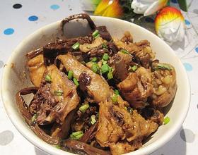 - 7. 下鸡块翻炒,倒入一瓶盖料酒。