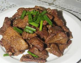 锅里放油烧至6-7热,一片片放入猪肝炸至金黄