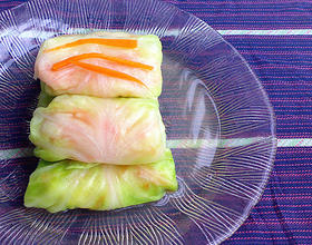 - 10. 把菠萝菜卷放入碟子中,再加入菠萝糖醋汁,即成