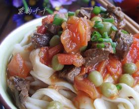 - 16. 捞出过冷水,装碗再浇上茄汁牛肉块,撒葱花即成。